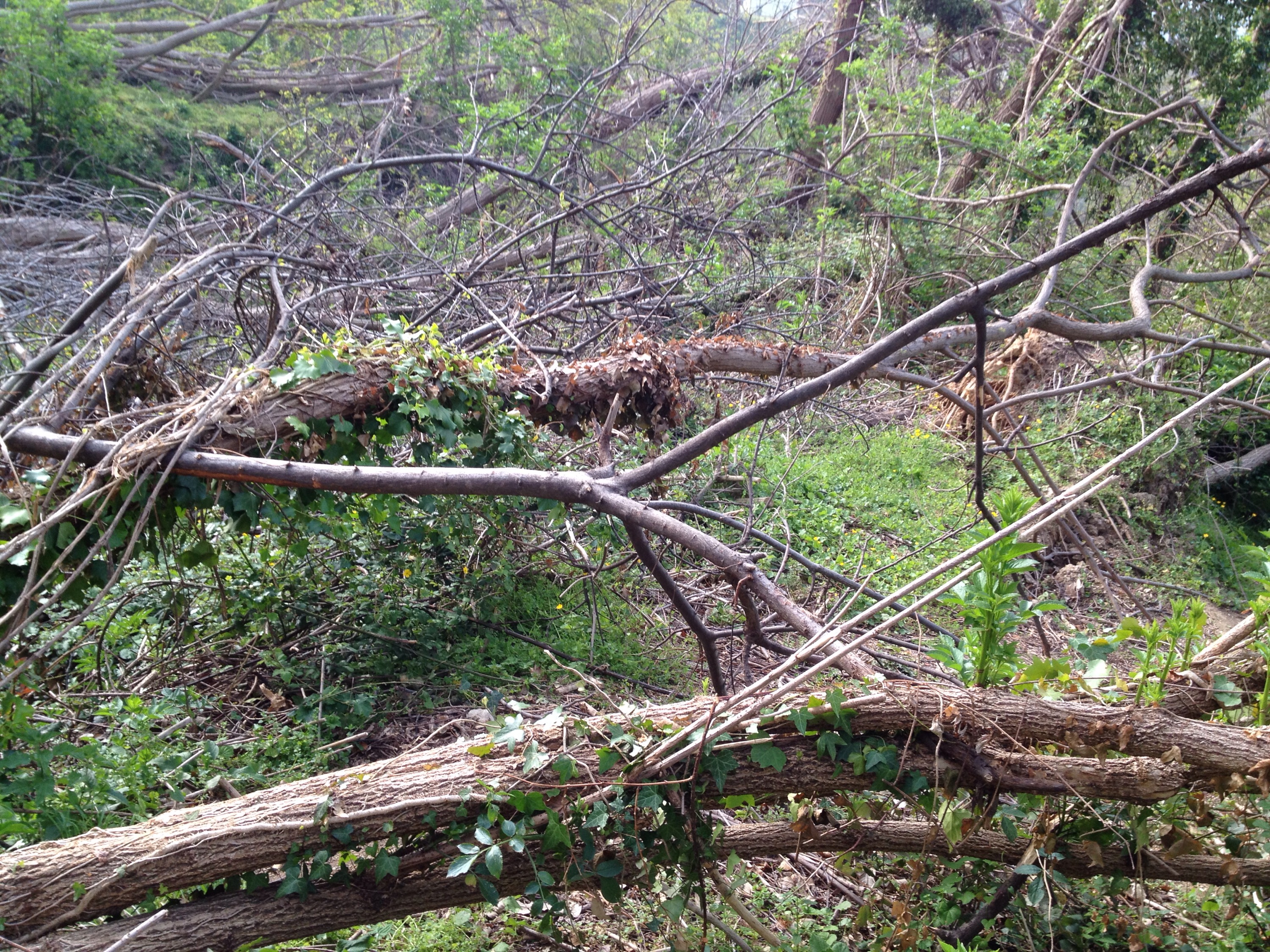It was a long walk of around 32 km. There was a big mixture of dangerous busy roads , quiet country roads as well as quite a few tracks through the forest. At one stage , I came across a valley with a large number of trees fallen. Someone did tell me yesterday that there had been a huge storm last week. Luckily someone had cut the larger trees across the path with a chain saw, but I still had to do a lot of scrambling, especially squeezing through gaps between fallen branches with my backpack.