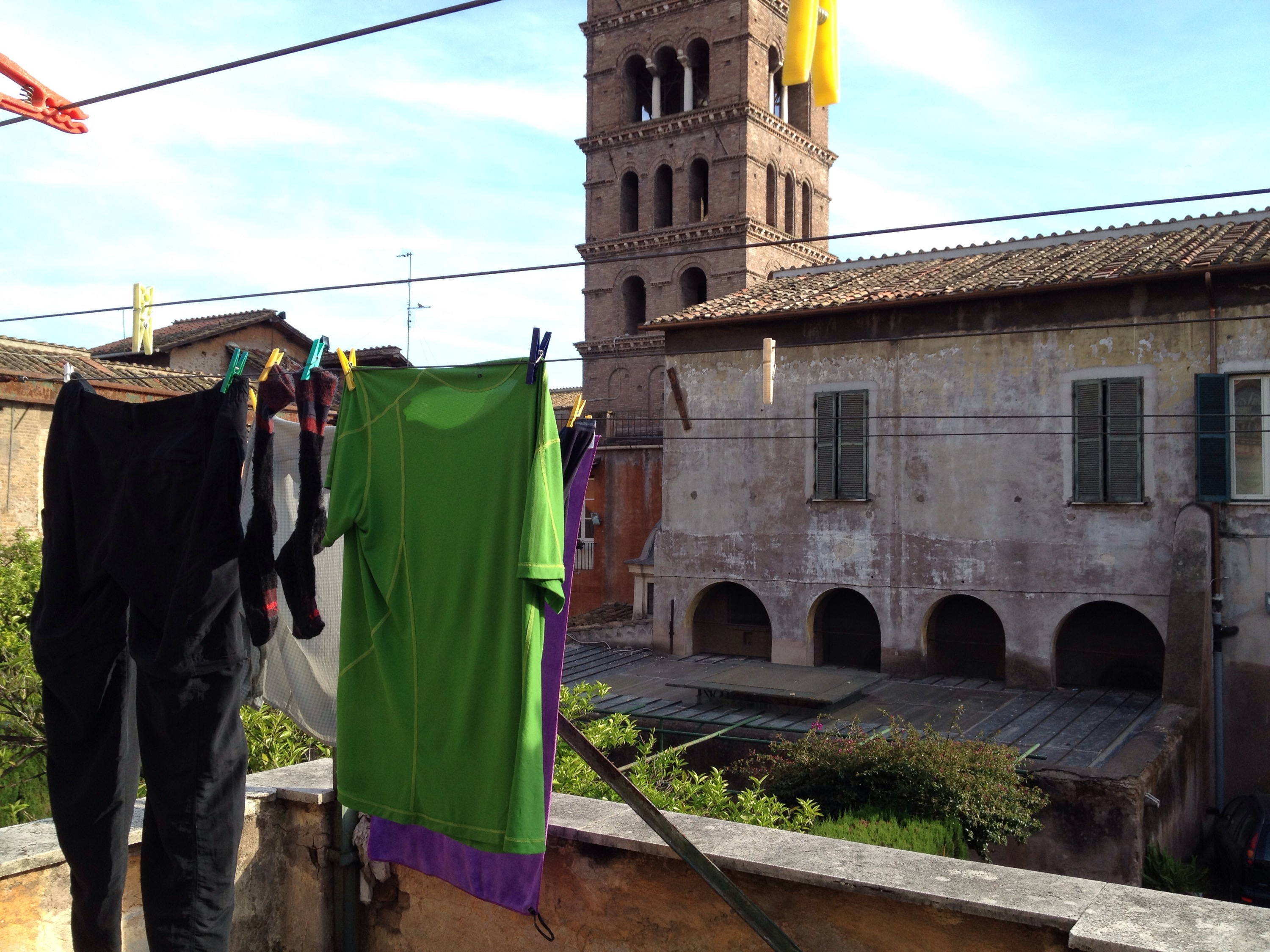 I did have a few more kilometers to go to reach the hostel in Trastevere where I had a long interesting conversation with Padre Paolo who comes from the Veneto. We had the same foot washing ceremony as I had back in Abadia ad Isola as the hostel is run by the same confraternity, and a pleasant dinner with the volunteers.