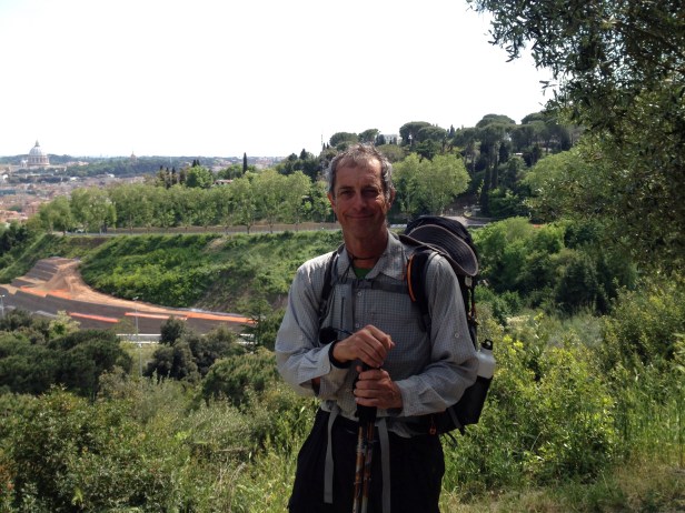 The rest of the walk was basically urban. There were some very busy roads, mostly with footpaths. The problem was that the footpaths kept disappearing on one side of the road and appearing on the other side . This meant I had to scuttle across at times 4 busy lanes a number of times. I finally reached Monte Mario , or Mons Gaudi (the hill of joy ) as it was known to medieval pilgrims . From here pilgrims would get their first view of Saint Peter’s after months of travel.