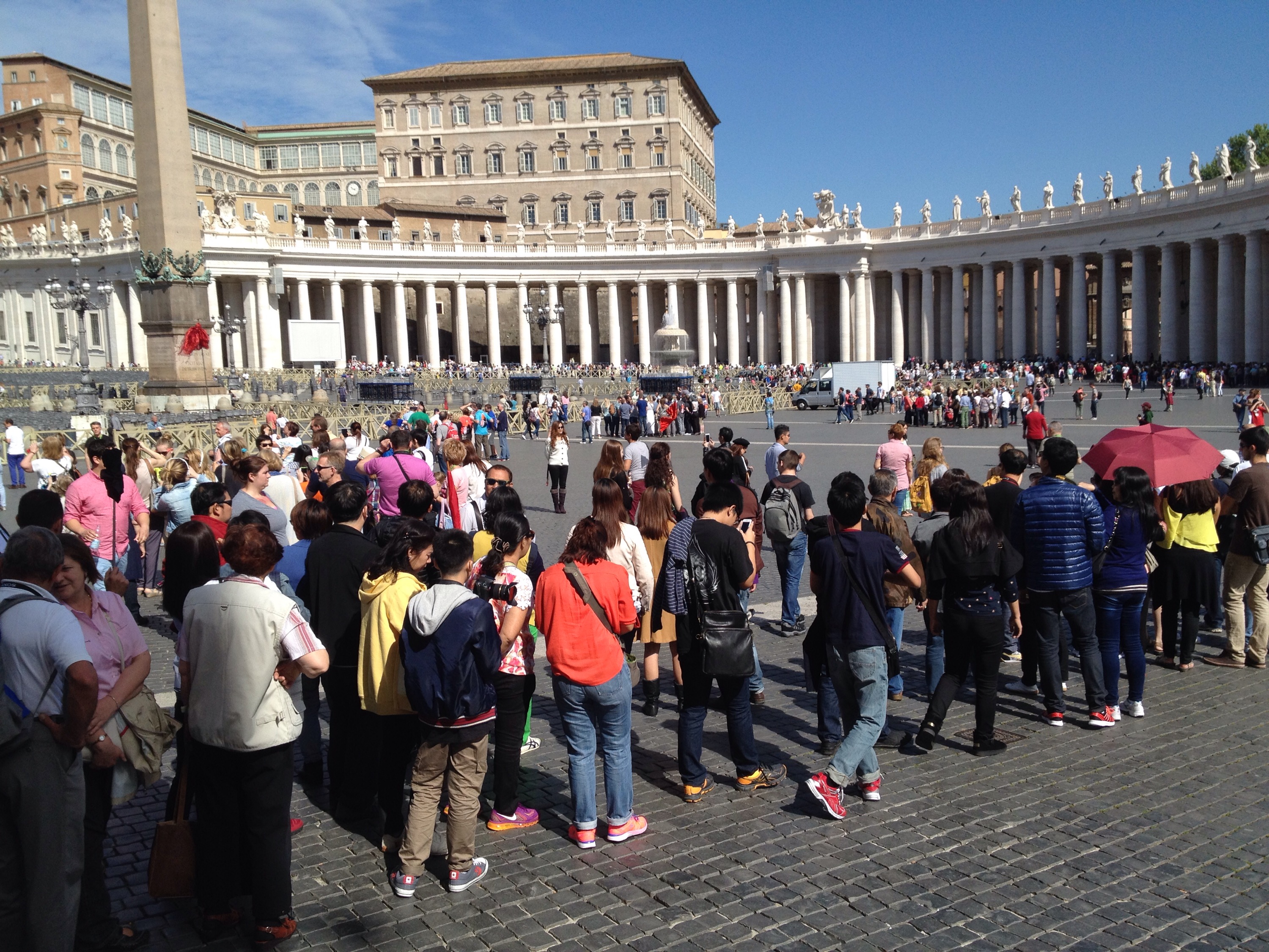 By the time I got to the Vatican at 9.30, there was already a very long queue snaking around the huge square .