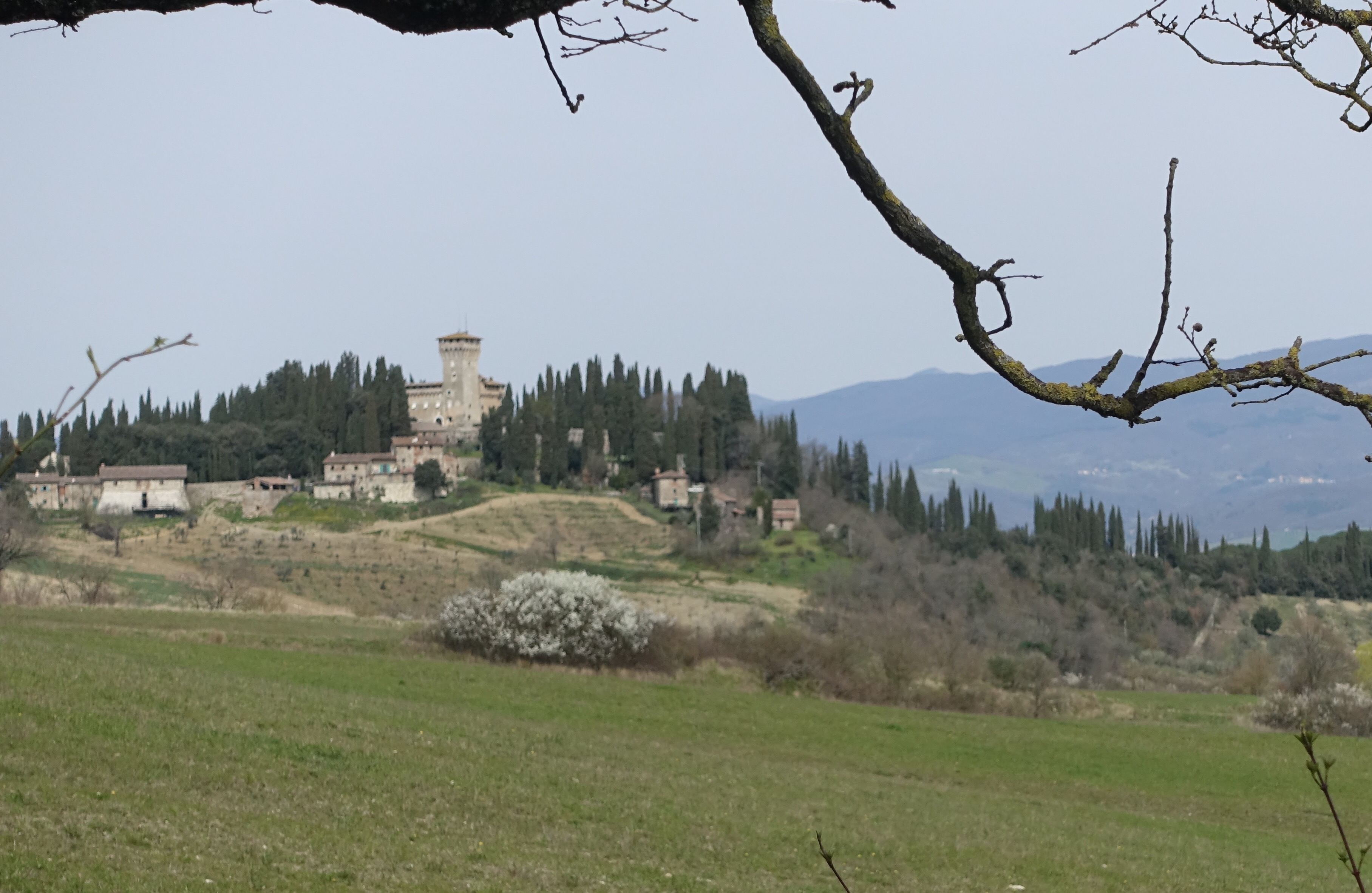 After my first climb of the day, I reached the Castle of Trebbiano which largely dates from the 12th to 14th centuries . It was a favourite hunting base of Lorenzo the Magnificent .