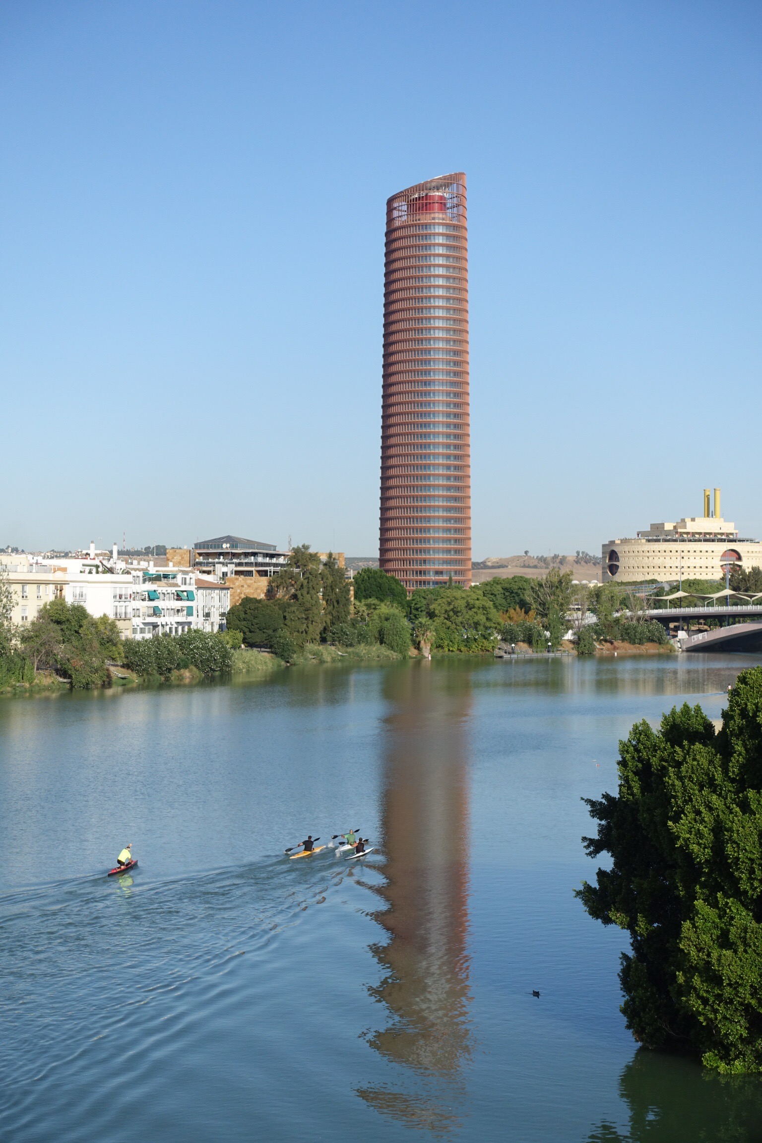 As is usual passing out of a big city, the first few hours were a bit ugly. I passed over both branches of the Guadalquivir river. This tall building was visible from almost 20km away later on my walk.