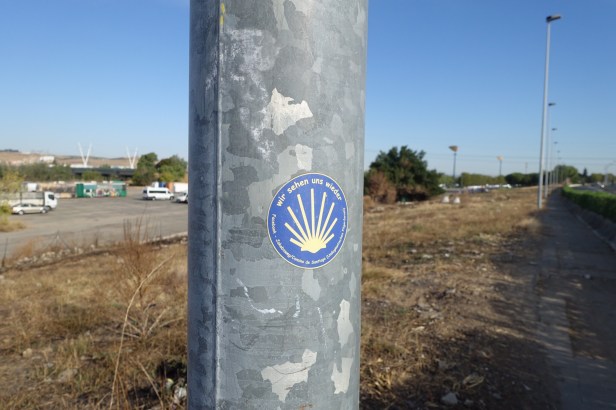 I couldn’t see any of the signs that mark the way in the city, but finally I picked them up outside town. where they are much easier to see.