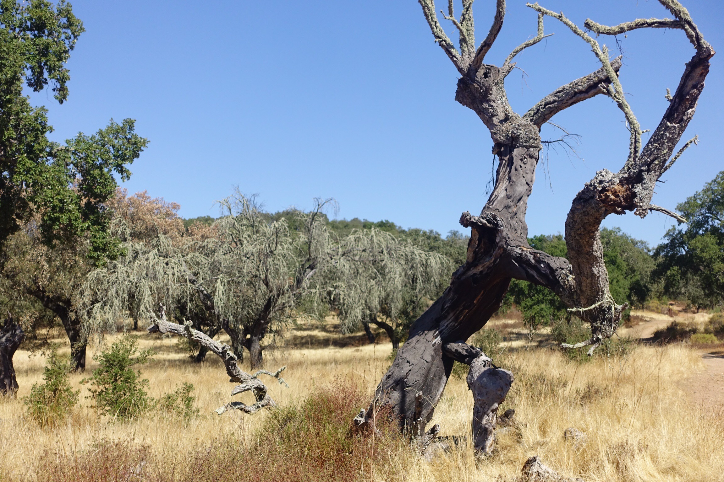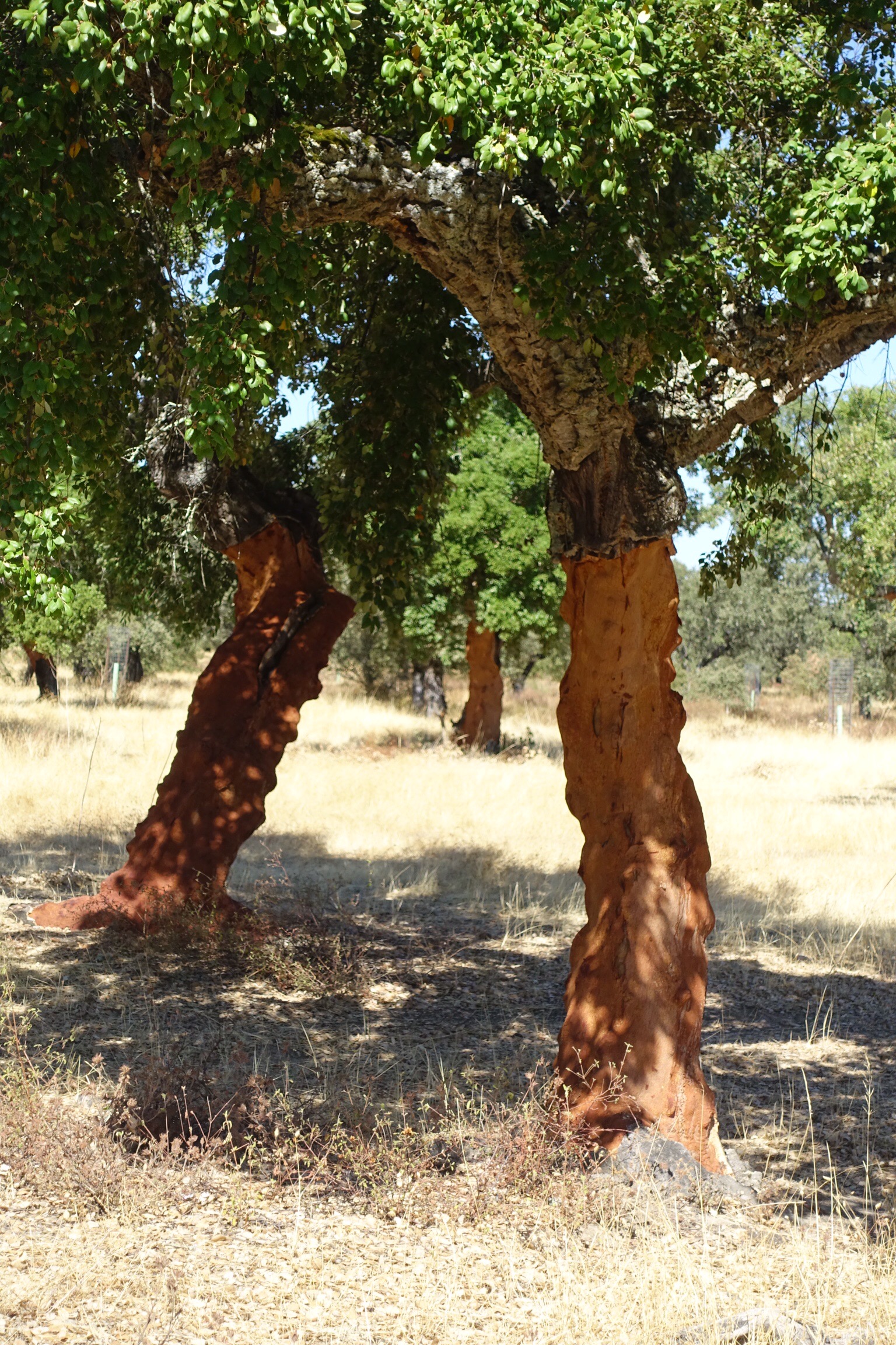 I saw more cork oaks that had recently been stripped.