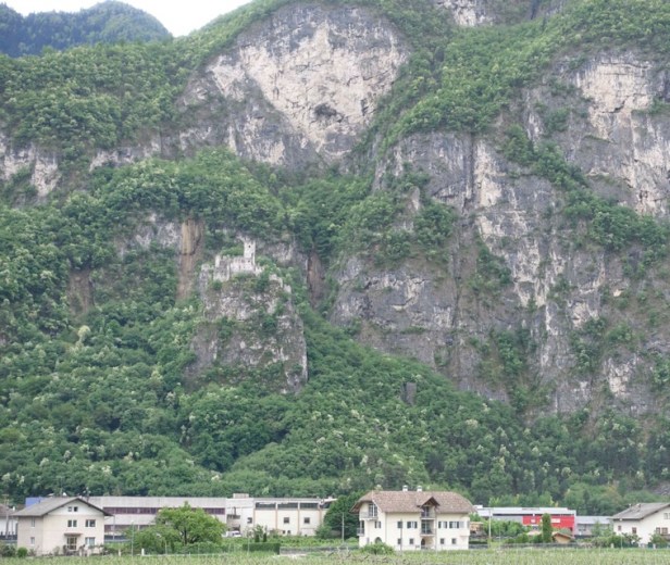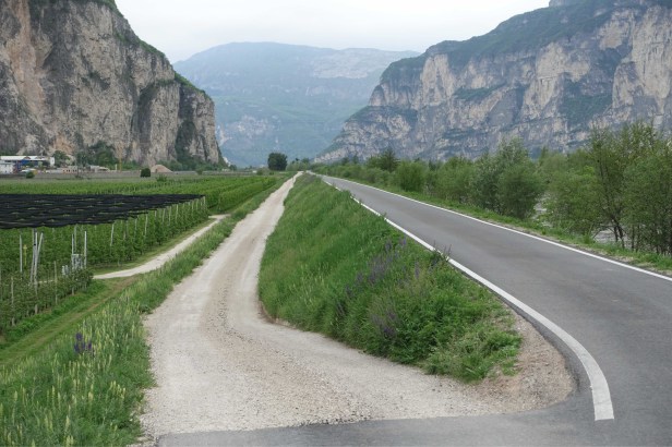 I left Salorno and headed down the valley along the cycle path. The town’s castle blends into the rock cliff face.