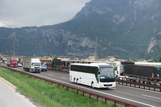 The road is up in the hills and not straight down the valley as in ancient times the valley was swampy with the Adige river meandering back and forth.