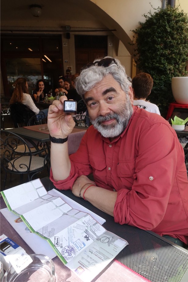 When I arrived in the main piazza. Gigi from the Via Romea Germanica Association came on his bicycle to put a stamp on my credenziale or pilgrims passport .