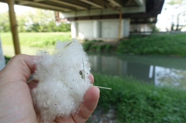 In Italy at this time of the year the air is sometimes full of floating white bits of fluff . These are hairy seeds from poplars and similar trees.