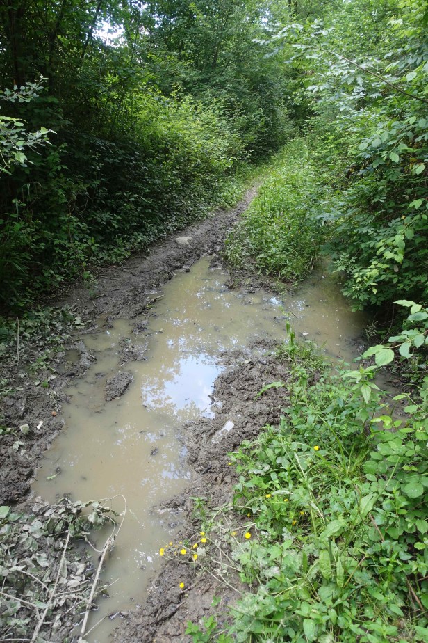 Once again I was dodging and tiptoeing through very muddy sections of track .