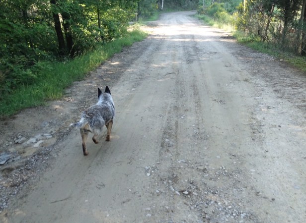 One of the blue healers from tbe agriturismo place I stayed at headed off with me and I was afraid I’d have a problem like they have with Rita at the Refugio the night before .