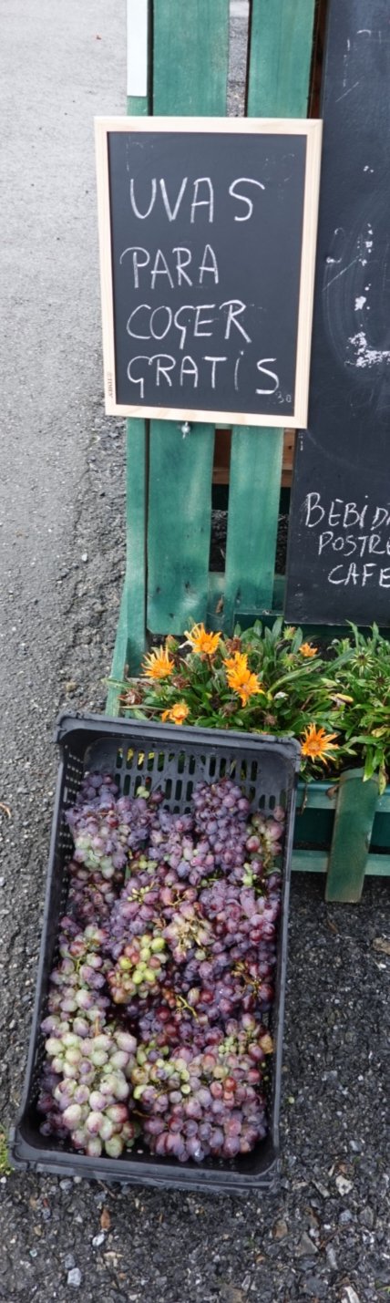Not long after leaving this morning I came across a box of home grown grapes put out for pilgrims.