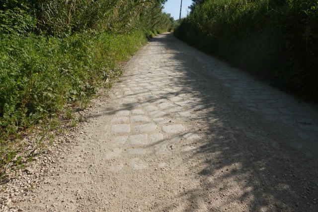 I thought that I was walking on a dirt road, but its actually paved with stone .
