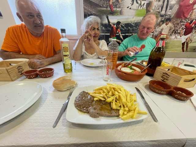 We all went to dinner together at a local hole in the wall and all that was on the menu was steak and chips. Unfortunate for our vegan pilgrim from the USA.