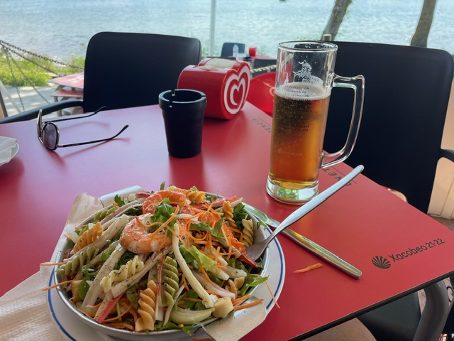 As it was too early to get into the albergue, I went to a riverside cafe for lunch .