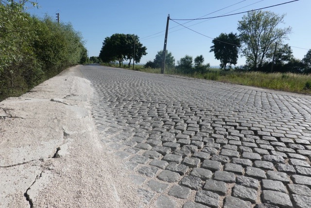 A long section of the road that I’m walking on is paved with cobblestones, although some parts have been covered with bitumen.