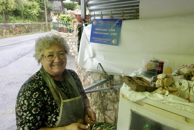They’re aren’t too many places to stop along the way, and an enterprising woman has set up a little stall selling drinks and home made biscuits.