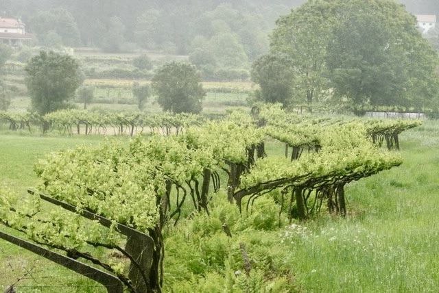 Whilst there are vineyards, there are also many vines growing on trellises around the edge of fields. I wonder if they are table grapes?