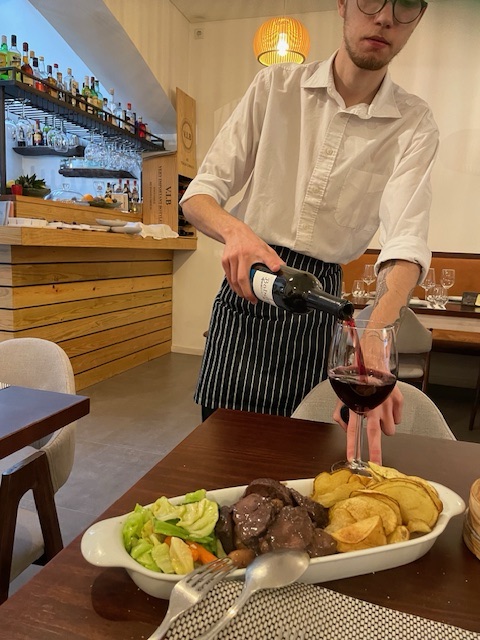 Dinner was a very tasty pork cheek with chestnuts dish. It didn’t cost that much more than the basic dinner I had the night before . The cafe owner at Vairão is charging pilgrims probably double what is normal as he has a monopoly.