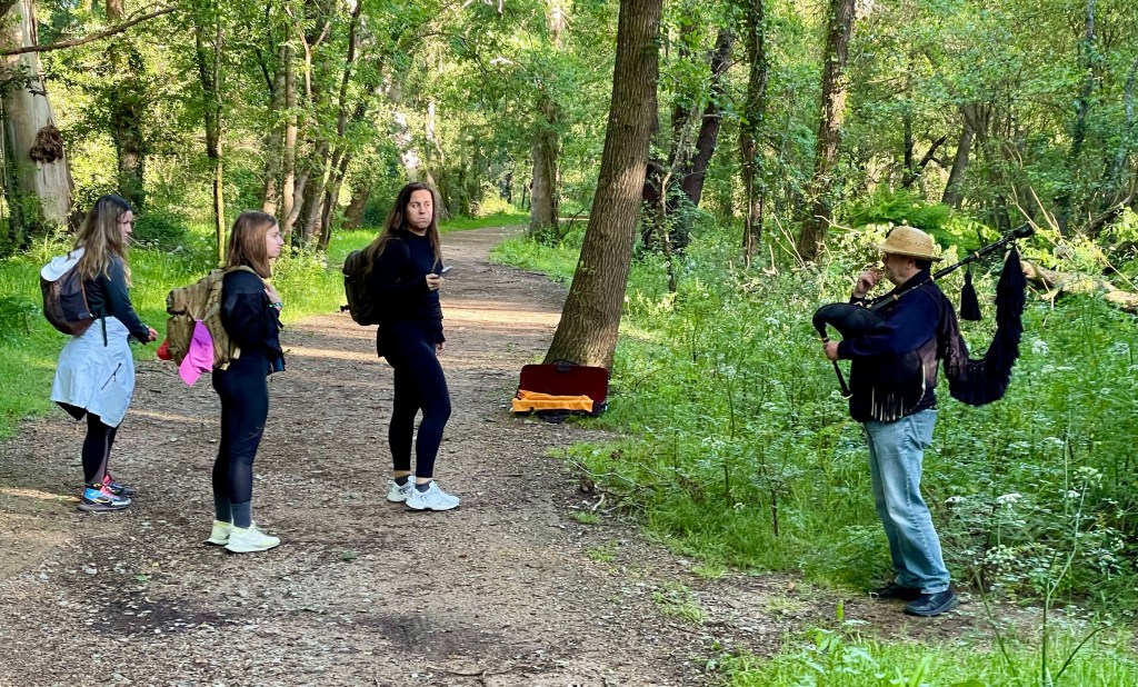 In a wood just outside town, a man was offering to stamp your credential and have a chat and there was a bagpipe busker. These were sure signs of large numbers of pilgrims